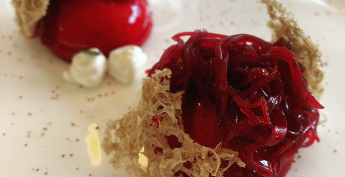 Ho scelto di pormi con classe, chiamando le cose col loro nome se vengo interpellata (quindi carcasse o cadaveri, in base all’ispirazione), ma stando sempre al mio posto. Ammirando i piatti che spesso, nei viaggi, vengono preparati su misura per me, e presentati con classe e cortesia, Cose prelibate, buone , belle, che danno ancora più soddisfazione: nessuno è morto per diventare la mia cena. E guarda un po’, tutti a fotografare quel che mangio io. Come le prelibatezze dello chef Simone Cantafio, che quando ha un ospite che non mangia carne sembra ancora più fantasioso, e mi ha permesso di assaggiare autentiche meraviglie.
