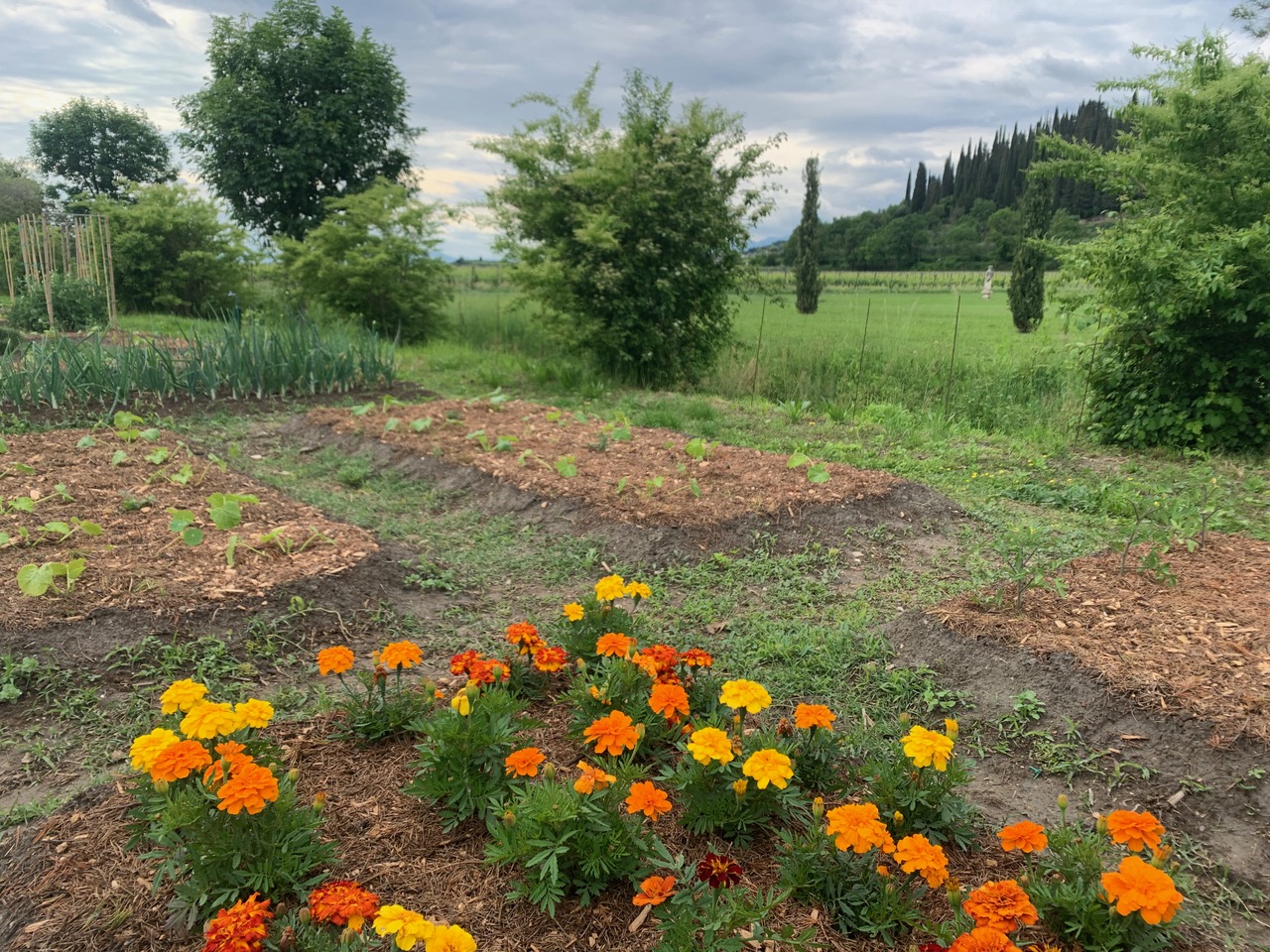 Alberi secolari, vigneti, fiori. Ma anche pomodori e zucchine, cavolfiori e fragole, cappucci e melanzane. La natura offre il meglio, qui, e se ad accogliere gli ospiti c’è un magnifico parco ricco di spazi ombreggiati e appartati, con un prato sempre perfetto che invoglia a passeggiare e riposarsi, ben 1500 metri quadri di terreno ospitano oggi un orto a conduzione biologica sempre brulicante di vita, per la gioia di api e farfalle, e per soddisfare al meglio i palati più esigenti.